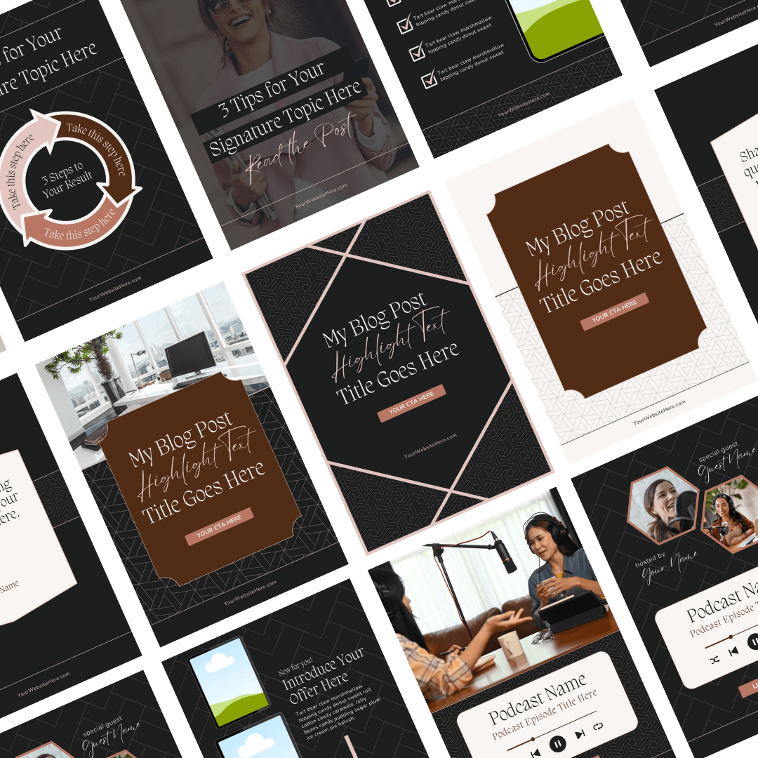 Promote your blog posts, podcast episodes, and products with these simple modern and feminine templates.
